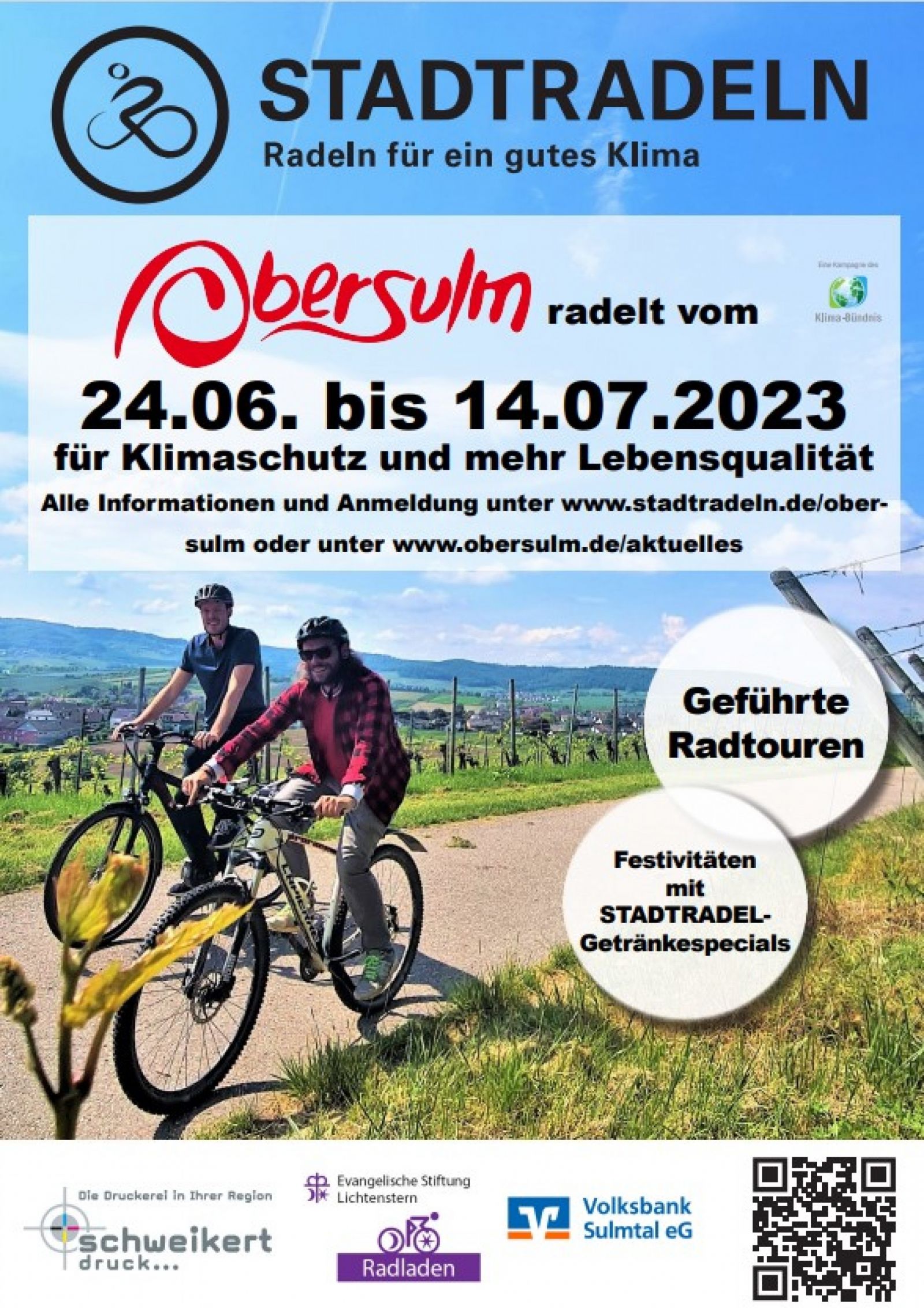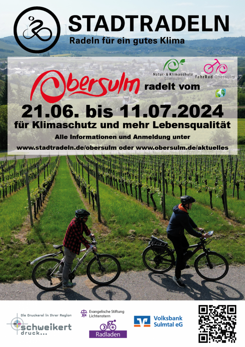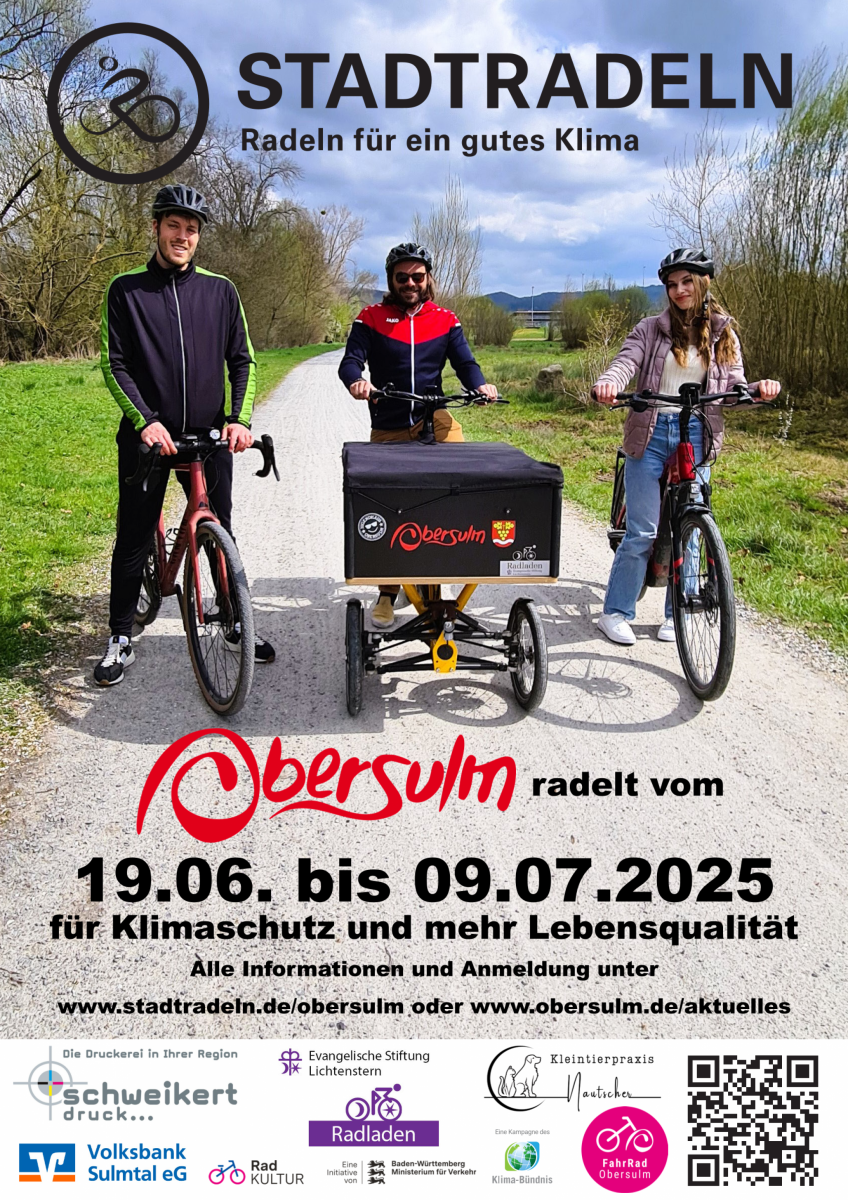 Vom 25. Juni bis 15. Juli sammelte Obersulm gemeinsam mit vielen weiteren Städten und Gemeinden im Landkreis Heilbronn, dem Landkreis und der Stadt Heilbronn beim bundesweiten STADTRADELN Radkilometer. Über 6700 Radelnde sammelten im Landkreis Heilbronn mehr als 1,6 Millionen Radkilometer. In der Gemeinde Obersulm wurden über 70.000 Kilometer gesammelt: Ein starkes Zeichen für Klimaschutz und nachhaltige Mobilität.