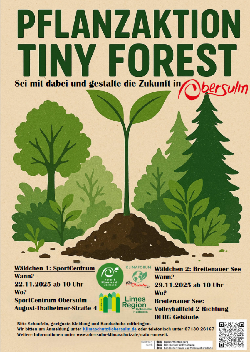 In der Gemeinde Obersulm entstehen bald zwei Tiny Forests - kleine, dicht bepflanzte Wäldchen, die nicht nur die Artenvielfalt fördern, sondern auch neue Begegnungsorte für Mensch und Natur schaffen. Das Projekt wird im Rahmen des EU-Förderprogramms LEADER gefördert.